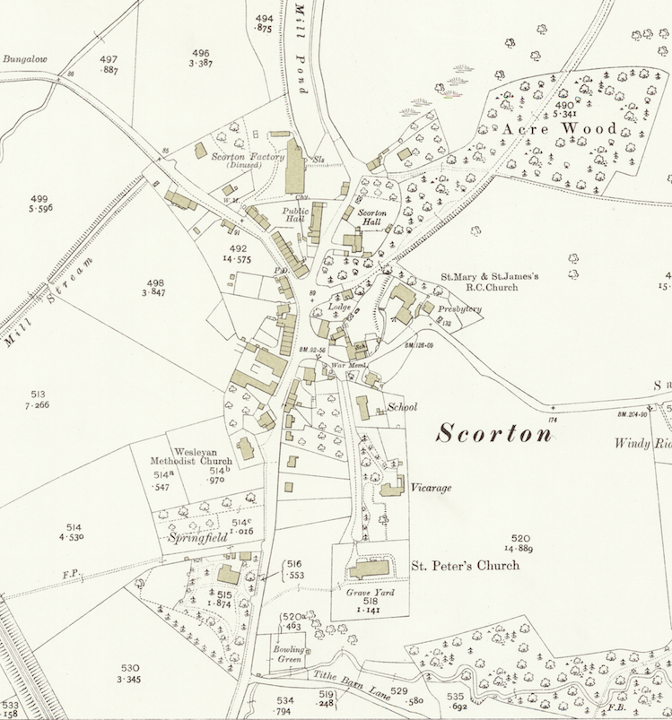 Scorton village as it was in 1932, downloaded from the archives of the National Library of Scotland https://maps.nls.uk/index.html
